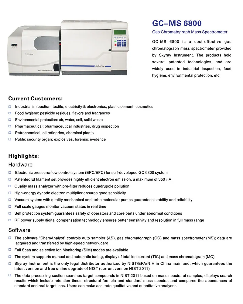 | संवेदनशीलता | पूर्ण स्क्यान, S/N ≥30:1 (RMS) सँग m/z 272 मा 1pg OFN |